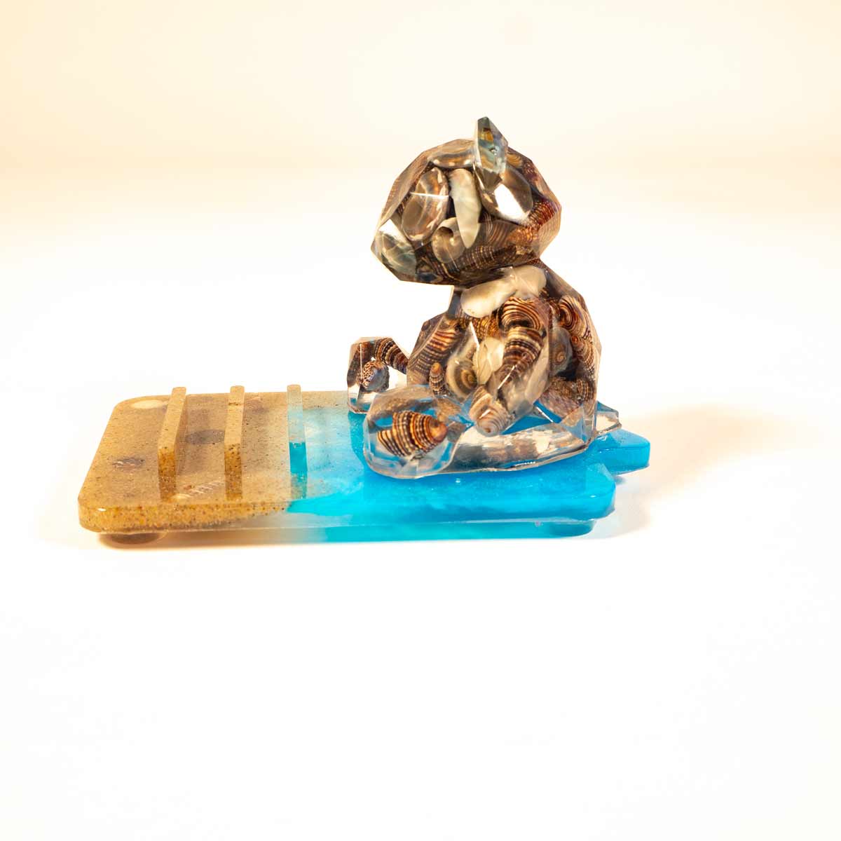 Verspielter Smartphonehalter, ideal zum Video schauen und zum Ablegen des Handys. Er ist im Strandstyle eingegossen mit echtem Ostseesand und vielen kleinen Muscheln.