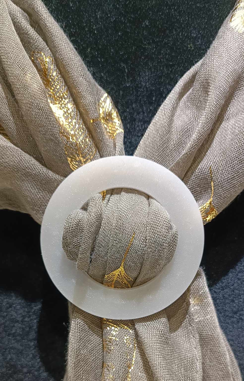 Jetzt verrutscht nix mehr! Mit diesem Schalring bleibt der Schal wo er sein soll. Er ist in einem dezenten elfenbeinfarbenem Ton. Dadurch ist er universell einsetzbar für jede Farbe des Schals. Der Durchmesser ist knapp 6 cm.